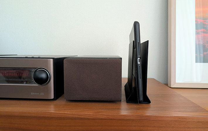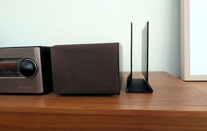 このスタンドを設置したのは、リビングにあるステレオのすぐ横。