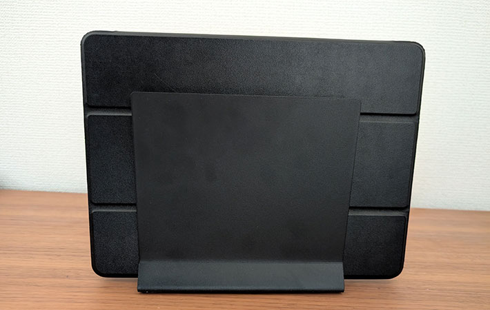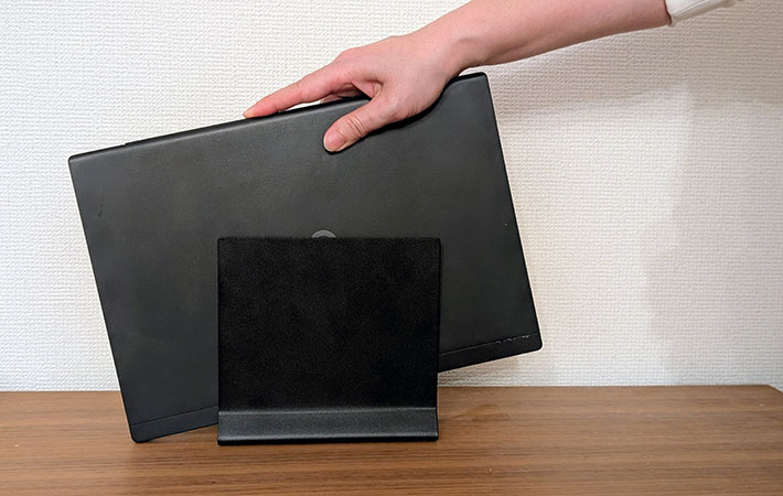 立てて収納することで作業スペースもすっきり。ノートPCをメインで使う人は、卓上の収納スタンドにしてもよさそうです。