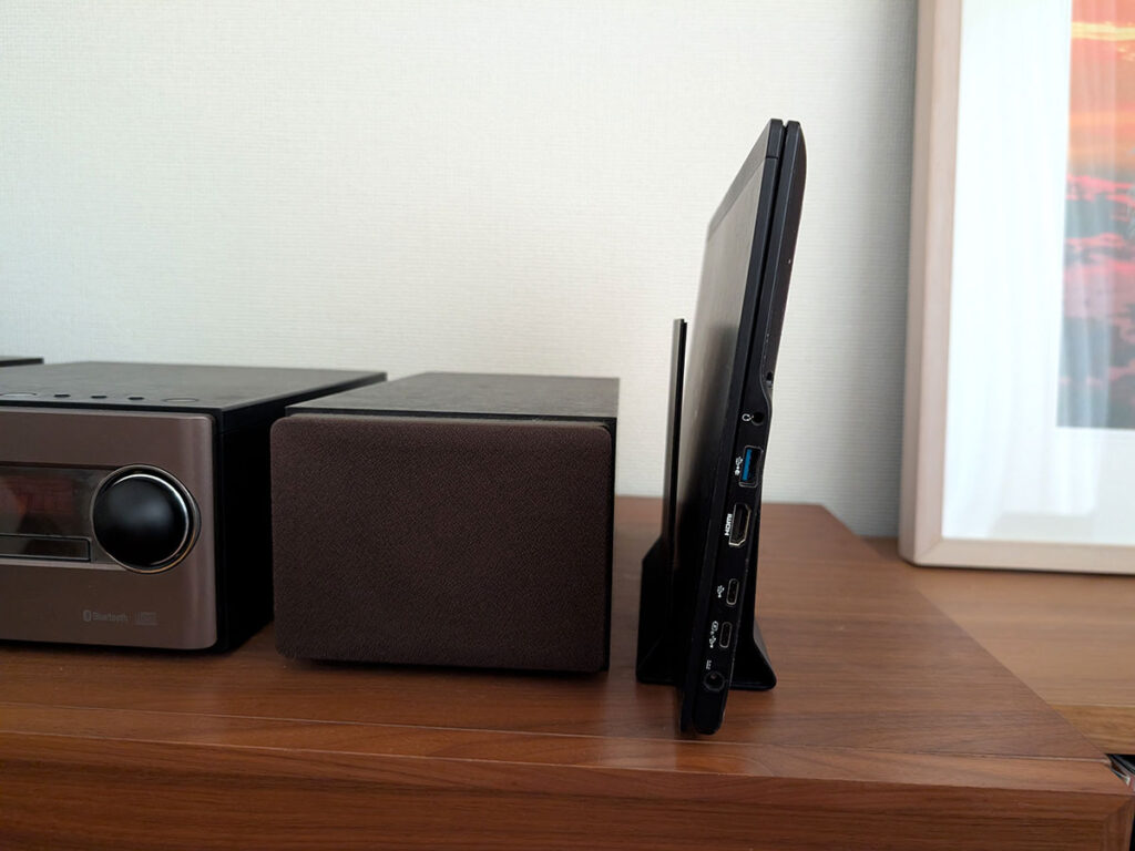 正面に置くとそれなりに存在感が出るので、あえて正面置きで作業のモチベーションを上げるもよし、シンプルに横置きですっきり空間に溶け込ませるもよし。