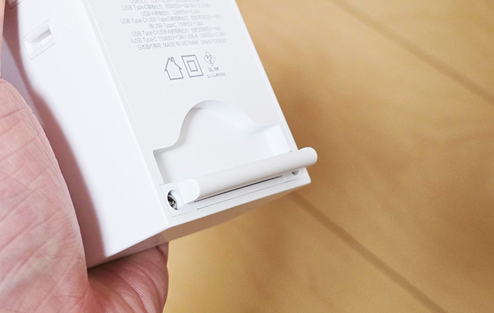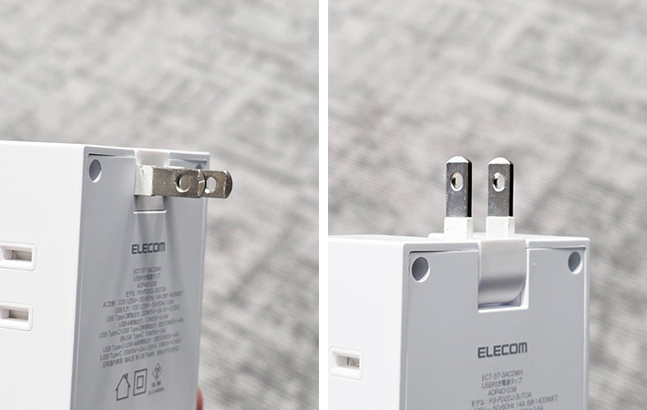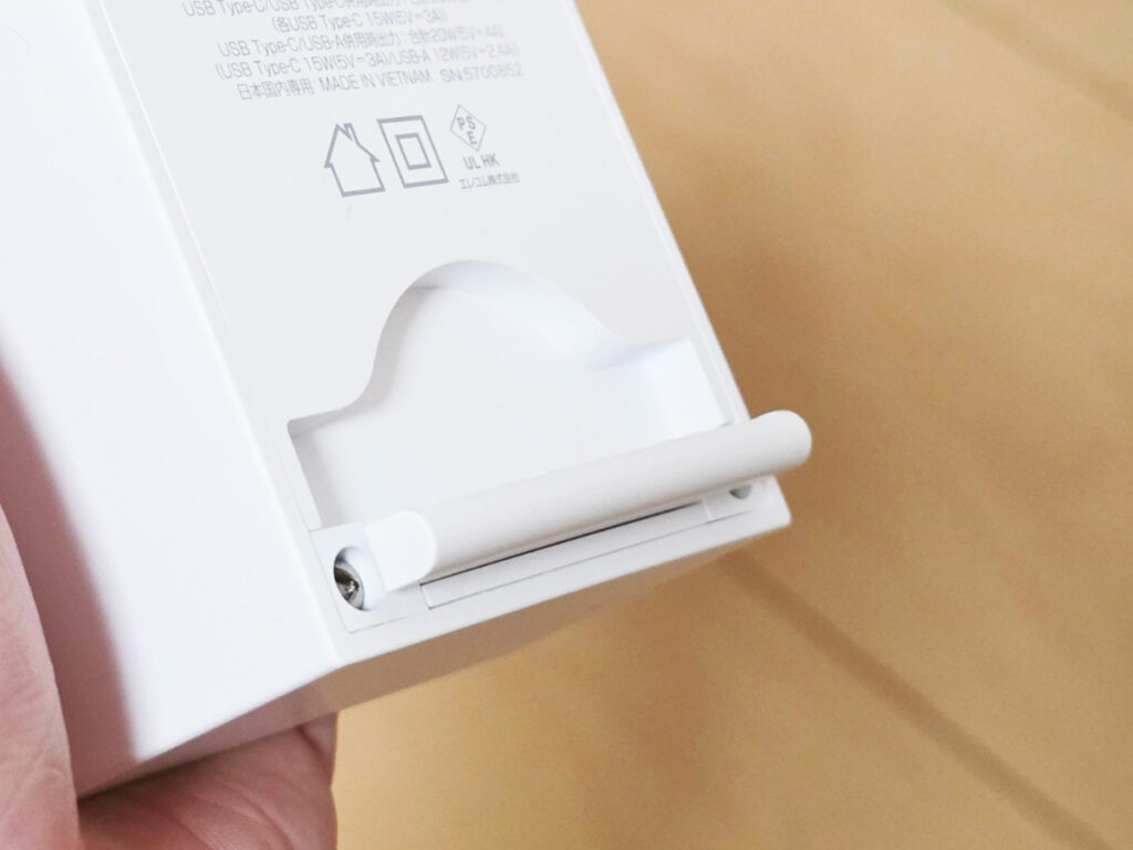 「もっと早く知りたかった!」「ほかのメーカーにも真似してほしい」 グラつかない工夫がすごい『電源タップ』は「小さいのにUSB-CもAも全部入り!」 家電 By - あずま 更新:2026-04-08 ※本記事はUPDATEが独自に制作したコンテンツです。また、本記事を経由して商品の購入が発生した場合に、ECサイト等から送客手数料を受領することがあります。 スマホやタブレット、ノートPCなどをまとめて充電したい時、コンセントの数が足りず不便に感じたことがある人は多いでしょう。 電源タップを使えば解決できますが、デバイスごとに充電器を用意する必要があり、USB-CやUSB-Aなど端子の違いに対応するのも手間がかかります。 充電器が大きいと隣同士で干渉し、思うように差し込めないことも…。 ACアダプター同士が干渉してしまう こうした悩みをまとめて解消してくれるのが、便利なPC周辺機器を展開する『エレコム』の『ECT-37-3AC2WH』です! Amazonで見る 楽天市場で見る コンパクトなのにこれ1台でOK。USBつきの直差し電源タップ 『ECT-37-3AC2WH』は、コンセントに直接差して使えるタイプの電源タップ。 手のひらにちょうど乗るくらいのコンパクトサイズと、真っ白で角ばったミニマルなデザインが特徴です。 コンセントの差し込み口は正面と左右の面に各1口ずつ用意されており、合計3口のAC出力に対応。 各面に1口ずつ分かれているため、大型のACアダプタを接続しても隣同士でほとんど干渉しません! 差し込み口を縦にすることでスリムなボディを実現 実際にノートPC用の充電器やスマホのアダプタなど、サイズの異なるものをいくつか接続してみても、互いにぶつかることなく快適に使えました。 電源タップではありがちな「隣のポートが使えない…」というストレスがなく、限られたコンセントを効率よく活用できます。 さらに便利なのが、正面にUSBポートが搭載されている点です。 USB-Aが1ポート、USB-Cが2ポート用意されており、別途USB充電器を用意しなくてもスマホやタブレット、ワイヤレスイヤホンなどを直接充電できます。 コンセントとUSB充電器をまとめて管理できるため、デスク周りがすっきりするだけでなく、持ち物を減らしたい人にも向いています。 各ポートには最大出力が記載 USB-Cポートは最大20Wの出力に対応しており、多くのスマホを急速充電可能です。充電スピードを重視したい場面でも、実用的な性能と言えるでしょう! USB-Aポートは、接続された機器に合わせて出力を最適化する『おまかせ充電』に対応。 出力の違いを意識せずに使えるため、「ワイヤレスイヤホンもこのポートで充電して大丈夫…?」と悩む必要がありません。 スマホとワイヤレスイヤホンを充電している様子 使い勝手の面では、背面に搭載された折りたたみ式のサポートバーも注目したいポイントです。 折りたたみ式のサポートバー コンセント直差しタイプは、重さでグラついたり抜けそうになったりすることがありますが、サポートバーを活用することで壁面にしっかり固定できます! サポートバーがあるだけで安定感が段違い また、コンセントプラグが180度回転するのも非常に便利。 向きを自由に変えられる デスクの側面や家具の裏など、スペースが限られた場所でも向きを調整して設置できます。 差し込み方向を変えられるとケーブルも取り回しやすく、設置場所の自由度が高まります。 そのままだと接続できないコンセント プラグの向きを変えると接続できた! これだけの機能を備えながらコンパクトにまとまっているため、持ち運び用にもピッタリ。 電源タップとUSB充電器をそれぞれ持ち歩くよりも荷物がかさばりにくく、出張や旅行時の充電環境をこれ1台で整えられます。 ホテルの客室でコンセントが足りない場面でも、ACとUSBを同時に使えるので頼りになるはずです。 コンパクトなポーチにもすっぽり エレコムの『ECT-37-3AC2WH』は、コンパクトなサイズにACコンセントとUSBポートをまとめた、使い勝手のいい1台でした。 自宅用としてはもちろん、オフィス用や旅行用にもピッタリなので、気になった人はぜひチェックしてみてください! Amazonで見る 楽天市場で見る [文・構成/UPDATE編集部] 出典 Amazon/楽天市場 関連ワード エレコム充電器検証電源タップ この記事をシェアする Share Post LINE