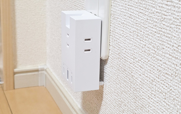 コンセントとUSB充電器をまとめて管理できるため、デスク周りがすっきりするだけでなく、持ち物を減らしたい人にも向いています。