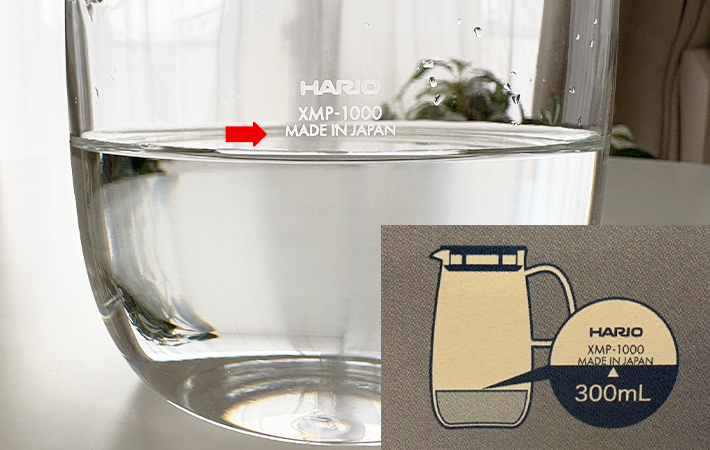 本体に目盛りはないのですが、『MADE IN JAPAN』のロゴの下あたりに合わせると、およそ300mLになるそうですよ。