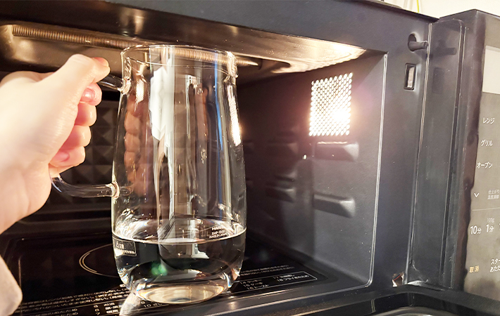 筆者の自宅の電子レンジは500Wだったので、3分30秒ほど温めました。水の量や電子レンジのワット数に合わせて、加熱時間を調整するといいでしょう。