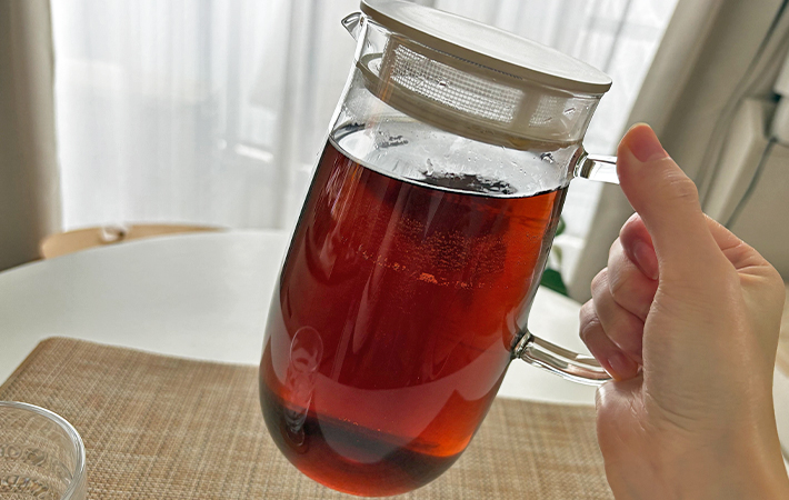 緑茶や紅茶など、好きな茶葉で作ることができるので、ティーポットとしての役割も果たしてくれるのは優秀だなと思いました。