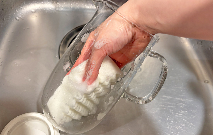 『むぎちゃん』は、ポットの口が広めに作られているので底までスポンジがしっかり届きます。
