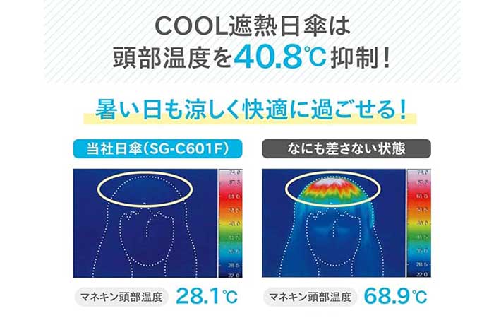 実際、遮熱率は全カラーで60%以上!一般的な日傘と比べても遮熱性能はトップクラスと言えるでしょう。