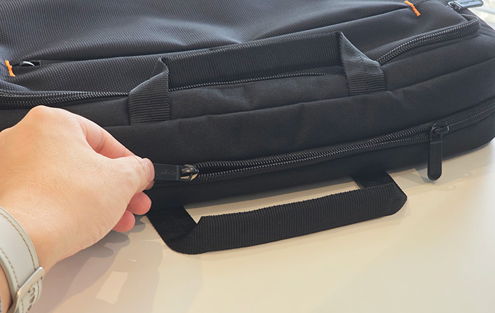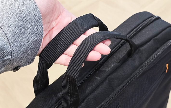 ハンドル部分も頑丈に作られているため、ノートPCや周辺機器を入れても安心して持ち運べます。毎日使うバッグとして、気兼ねなく扱える実用性の高さが感じられました。