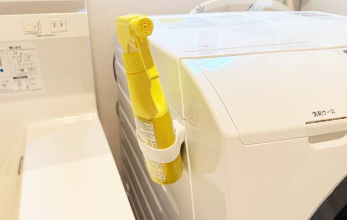 キッチンや洗面所はもちろん、ランドリーの洗剤や玄関の消臭スプレーなど、置き場に困りがちなボトル類に幅広く対応できます。