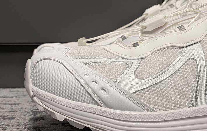 ほかにもアッパーには通気性に優れた3Dメッシュが使われていたり、耐久性と保護力の高い合成素材が使われていたりと、テック系シューズの多いサロモンらしい作りになっています。
