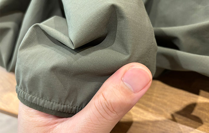 軽量で防風効果が高い生地を採用し、しなやかで手触りも滑らか。ストレッチ性も十分にあり、着ていて窮屈な感じがしません。