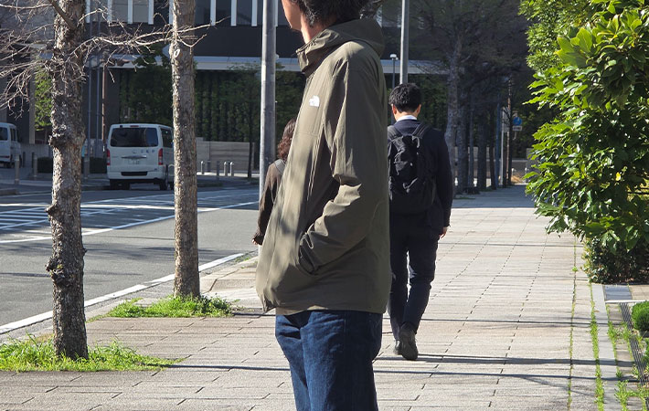 この日の気温17℃。多少風が吹いても寒さをほとんど感じず、身体にまとわりつくような重さもなく、着ていることを意識したタイミングはほとんどありませんでした。