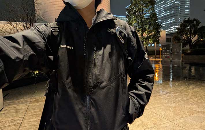 「自転車で傘させないけど、これがあると安心」 サッと羽織れる万能ウェアがこちら! ファッション By - プラム 更新:2026-04-09 ※本記事はUPDATEが独自に制作したコンテンツです。また、本記事を経由して商品の購入が発生した場合に、ECサイト等から送客手数料を受領することがあります。 4月に入り日中はあたたかく、半袖で過ごしている人も見かけるようになりました。 とは言え、夜は肌寒かったり、突然の雨で気温が下がったりと、天候が読めない日もあります。 そんな時に一着持っていると安心なのが、機能的なウェアです。 街でも山でも使えて、自転車通勤している人にも嬉しい機能を持つ、万能ウェアをご紹介します。 名作ウェアが高レベルすぎる 「え、こんな機能もあるの!?」 筆者がおすすめしたい万能ウェアが、こちらの『アヤコ プロ 2.0 ハードシェル フーデッド ジャケット アジアンフィット(以下、アヤコプロ2)』です。 Amazonで見る 楽天市場で見る アウトドアメーカーとして人気の高まってきている『MAMMUT(マムート)』の中でも、ハイクラス寄りのモデル。 タウンユースから雪山まで対応できる万能選手で、「機能性と価格のバランスがいい」と人気の名作です。 生地は薄そうに見えますが、2層構造の『Gore-Tex』を使用。高品質な素材が使われており、防水、防風性能は超優秀です! 裏地は各所にメッシュが追加されているなど、かなりしっかりとした作りになっています。 裏地にメッシュ 内側と外側のポケットはジッパーつきで、貴重品などを入れておくのにも最適。 止水ファスナーになっているので、濡らしたくないものも安心して入れられます。 水が入りにくく安心 そして、筆者が一番驚いた機能がコレ! なんと、ワキの下に通気性を確保するベンチレーションがついているのです。 こんなところが開くとは… なにコレ!?すごい! もともと透湿性の高いゴアテックスが使われているため、蒸れる心配は少なさそうですが、あつくなっても脱がずに体温調節ができるのは、ものすごく便利そうな予感しかしません! 自転車通勤をしている人なら、自転車をこいでいる最中はベンチレーションを全開にして、降りた後は閉めるなど、運動量に合わせて使い分けもできそうです。 実際にどのような着心地なのかを、早速見ていきましょう。 防水性も防風性も通気性も抜群! 本当に春秋冬と活躍する万能ウェアだった 身長178cmの筆者が、アジアサイズのXLを着用した状態がこちら。 若干、袖丈が長く見えますが、冬は重ね着をしてアウターとして使うことを考えると、これくらいのサイズがちょうどよさそうです。 伸縮性は特筆するほどありませんが、動きにくいなどもなく、登山でも使いやすいという理由がよく分かりました。 左右のポケットも大きく、思った以上に荷物が入りそうです。 せっかく防水性能を持っているので、雨風の強い日にアヤコプロ2を着用して、しばらく散歩をしてみました。 まず感じたのが、防風性能が高いこと。春の強風をものともせず、風をシャットアウトしていました。 また、横風で吹き込んできた雨が上半身を濡らしましたが、軽く払うだけで落ちる落ちる。 フードもついているので、傘がなくてもちょっとした雨ならしのげるでしょう。 気づいたらビショビショ サッと雨粒が落ちる そして、やはり役立ったのがワキの下のベンチレーションです。 室内に入ったり、長時間歩いてあつくなったりした時に開けておくと、涼しい風が入って快適! 通気性のいい素材はいろいろありますが、物理的に開いているのが一番涼しくなるのは間違いないでしょう。 ダブルジッパーであき具合を調節できるのもGood! 室内外で寒暖差の大きい冬はもちろん、春秋などにサッと羽織る時にも役立つ便利機能だと思います。 アヤコプロ2の気になる点や口コミの評価は? アヤコプロ2を着用していて気になったのは、素材の特性上、動く時にちょっと硬めのビニールっぽい音がすること。 シャカシャカといった軽い音ではないので安っぽさはありませんが、人によっては気になるポイントでしょう。 ネット上の口コミなどをチェックしてみると、このような声があがっていました。 ・多機能なのにデザインもよく、登山でも日常でも使えてめっちゃ便利。 ・アウトドアも日常も使えるって最高。長く使えそうだし買ってよかった。 ・自転車では傘をさせないし、これがあると安心。あつくなっても通気性を確保できる。 ・価格は高いけど、そのぶん性能もいいし何よりかっこいい! 多くの人がアヤコプロ2の多機能性を評価。防水、防風、通気性の確保など、あらゆる使い方にマッチする万能性にハマっていました。 マムートの万能ウェア・アヤコプロ2が便利すぎる まとめ マムートの人気ウェア・アヤコプロ2を検証。多くの人が評価するだけあり、機能もデザインも高レベルで、価格にも納得する逸品でした。 特に防水、防風性能は高く、使い方によっては3シーズン役立ちそうです。 ワキの下