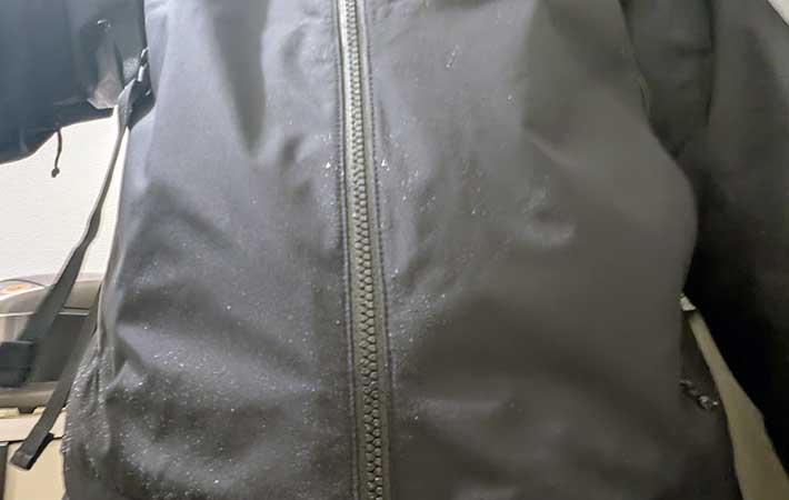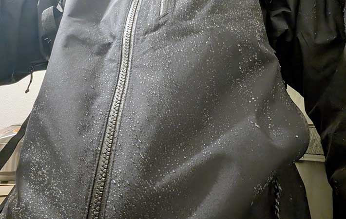 また、横風で吹き込んできた雨が上半身を濡らしましたが、軽く払うだけで落ちる落ちる。
