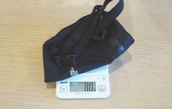 『ウォータープルーフショルダーポケット』の重さは、約80gと超軽量です。
