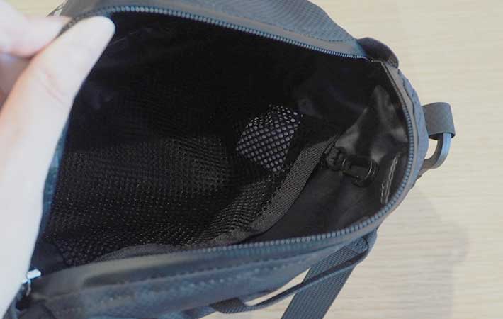 内側にはメッシュポケットが1つと、あると地味に便利なキーフックが。