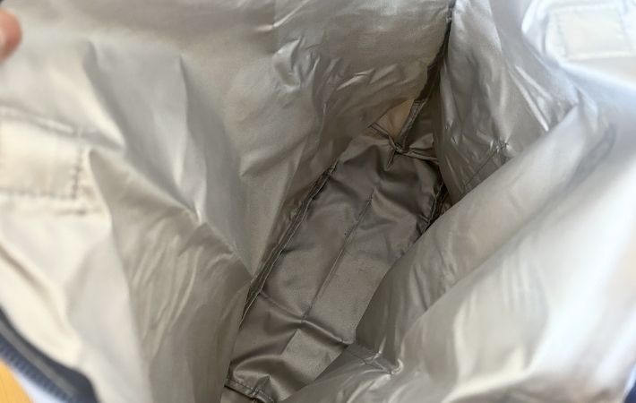 また、外ポケットと同様に内側も全面シルバーコーティングされており、保冷・保温をサポートしてくれます。