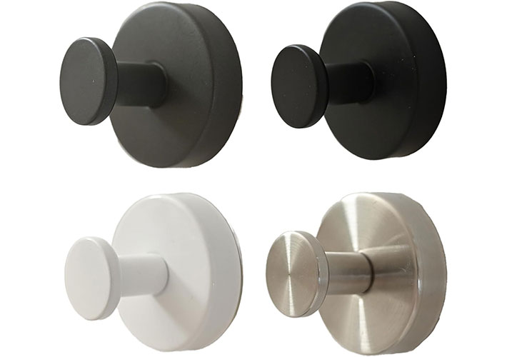 ・おしゃれなデザインで平らなツルッとした面であればしっかりくっつきます。玄関ドアにつけてエコバッグをかけて使ってます。フック部分がやや太めなので掛けるものを選ぶのがちょっと残念ですが、他は満足。