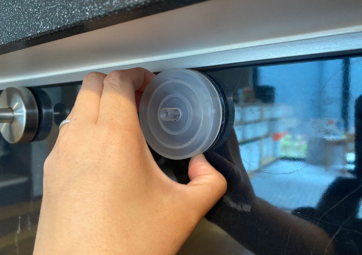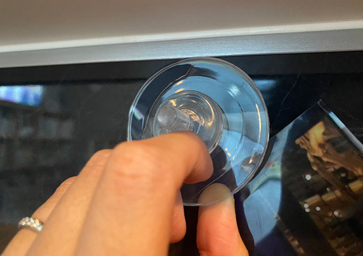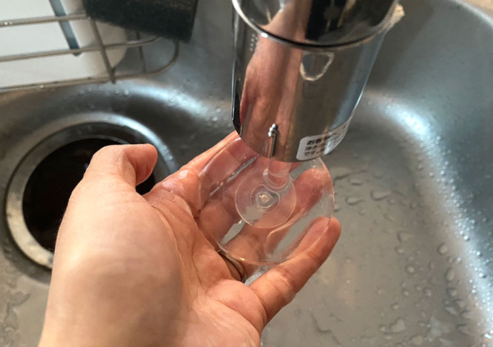まずは設置したい場所の水気や汚れを拭き取り、吸盤をぐっと貼りつけます。