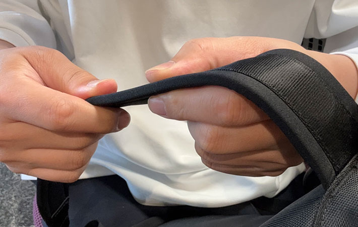 1点目は、ショルダーストラップのクッションが薄めなこと。