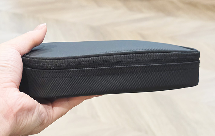一通りのアイテムを収納してファスナーを閉じても、全体が大きく膨らむことはありません。