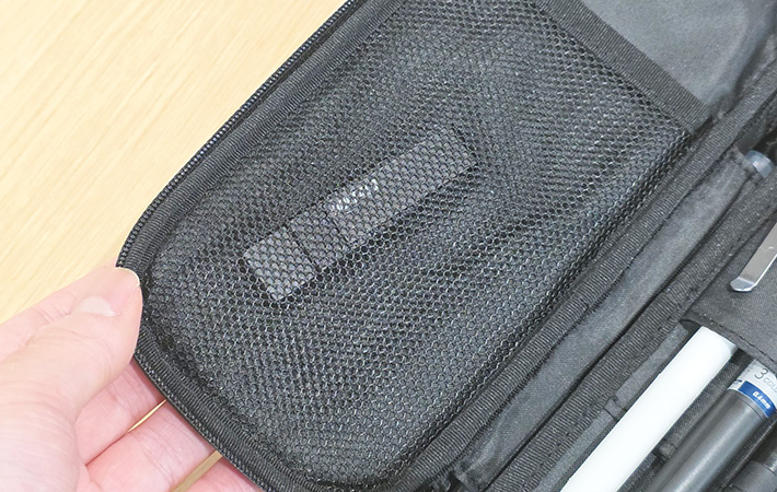 ペンホルダーの裏側には、マチのないポケットも用意されています。