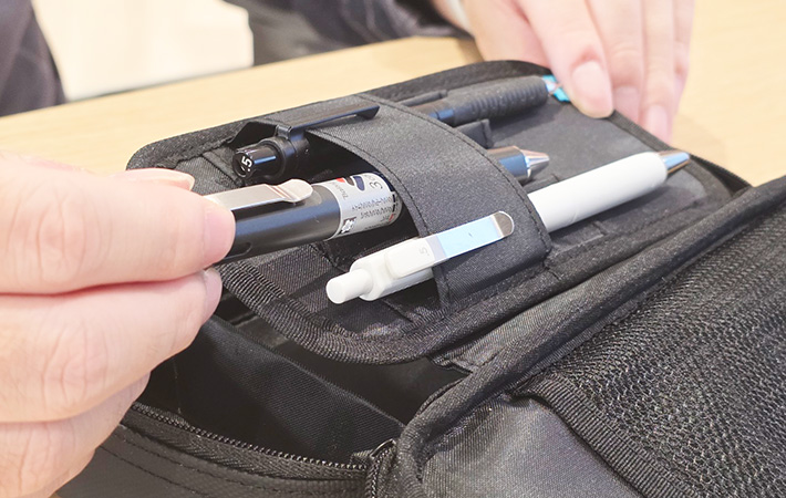 さらに、フタの裏側にはメッシュポケットも配置されており、定規のような長さのあるアイテムも収納可能。