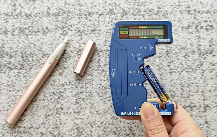 そこで取り入れてみたのが、『旭電機化成』の『スマイルキッズ デジタル電池チェッカー』でした。