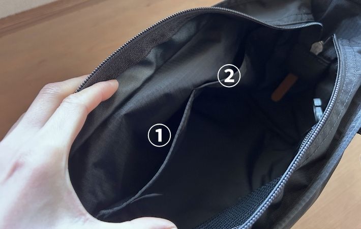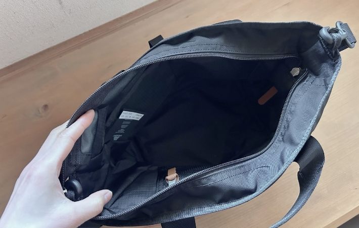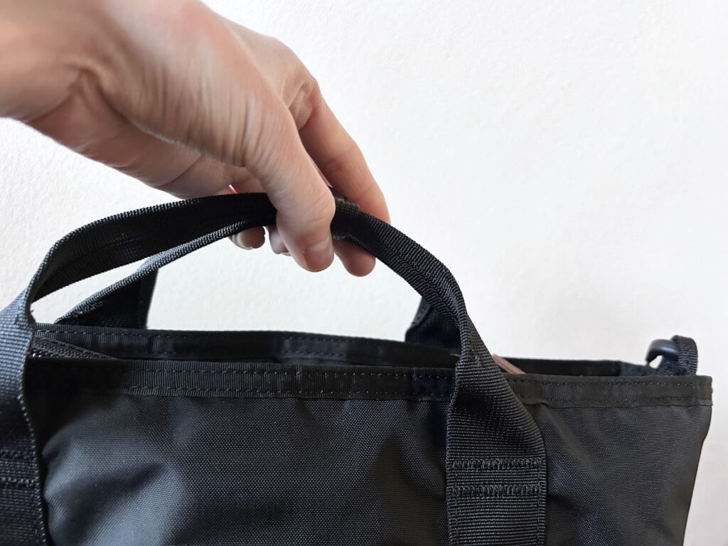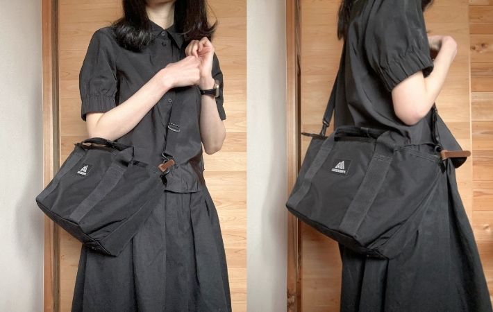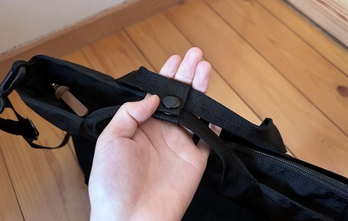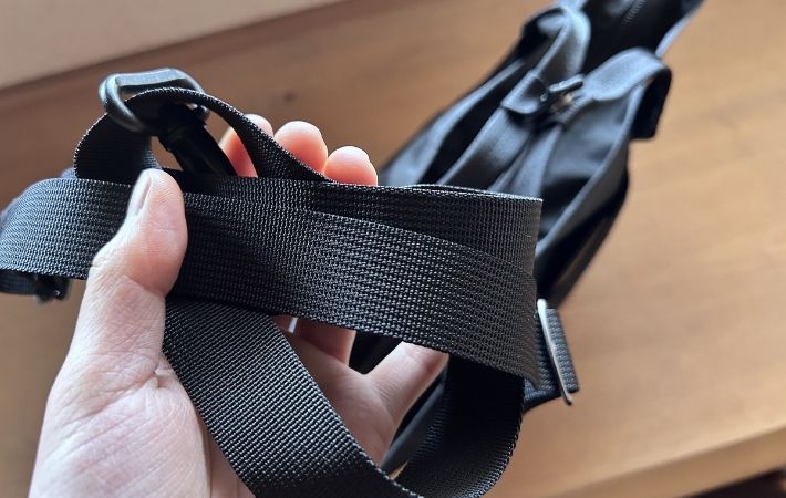 ただ、ショルダーストラップが比較的シンプルなナイロンテープ仕様なので、荷物を入れすぎると肩に食い込む感覚があるかもしれません。