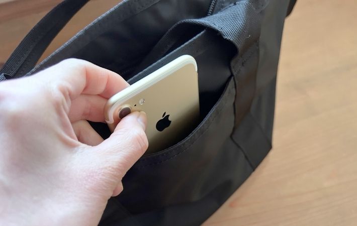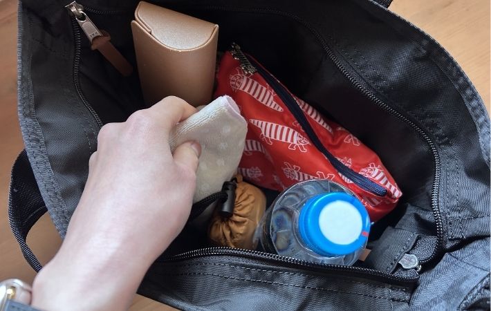 そのため、基本的には手で持つか、肘に掛けて持ち運ぶスタイルになります。