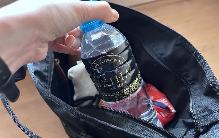 また、マチも15cmとかなり広めに取られているため、お弁当箱や厚みのあるポーチ、さらには500mLのペットボトルも安定して持ち運ぶことが可能です。