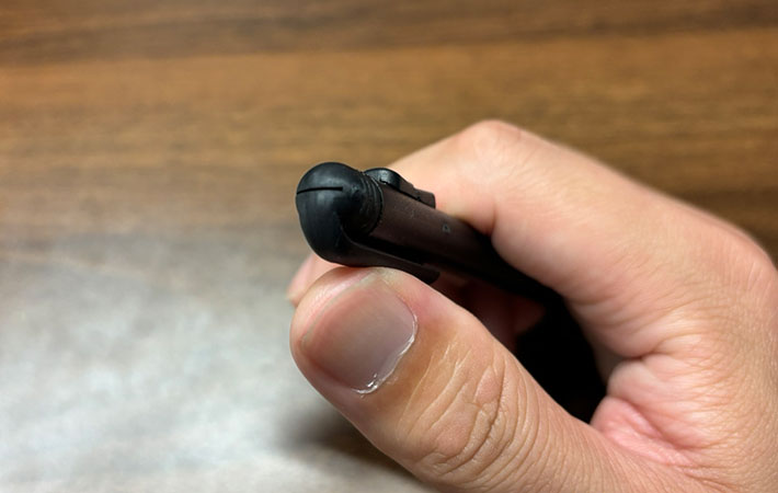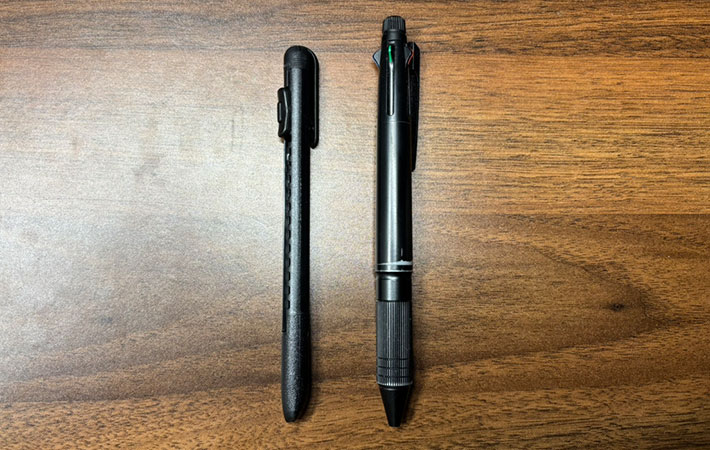 横に置いたボールペンと見比べても、太さに大きな差はありません。「本当に刃が入っているの?」と少し疑いたくなります。