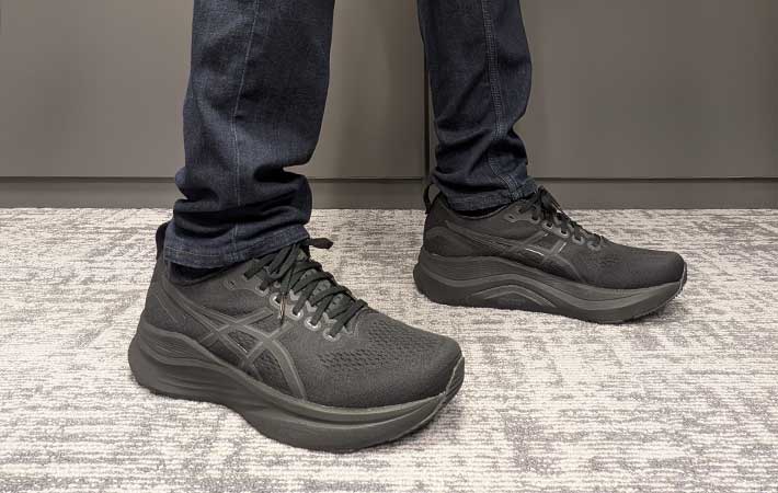 ジャストサイズは26.5cmの筆者ですが、ゲルカヤノはハーフサイズアップして27cmで履いています。