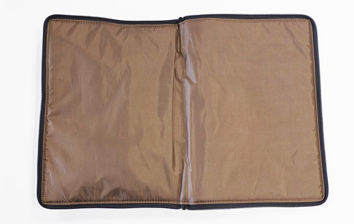 また、本体の外周にはコの字型のファスナーが備わっており、これを開くと全体を大きく展開できます。