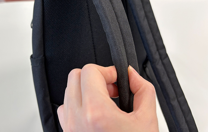 これだけ厚みがあれば、多少重い荷物を入れても肩への負担を抑えてくれそうです。