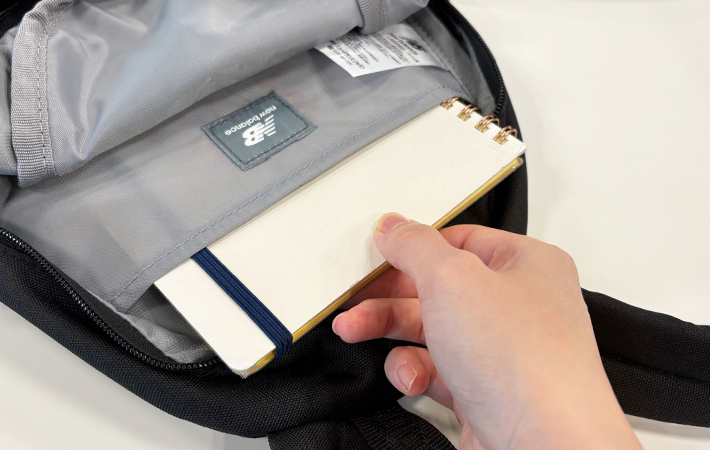 オープンポケットには、散らかりやすい小物やノート類を収納できますよ。