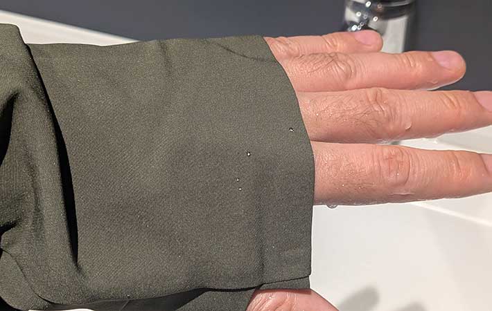 はっ水性能はかなり高く、蛇口から直接水をかけても問題なし。