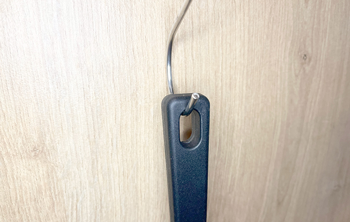 さらに持ち手の先には穴があり、S字フックを使えば吊り下げ収納も可能。