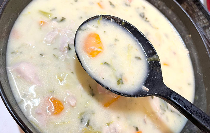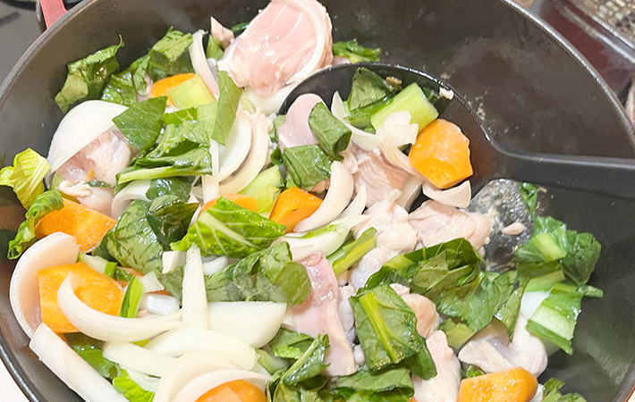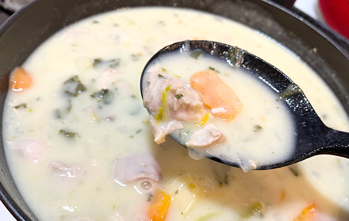 牛乳やルーを足して、いよいよシチューが完成!
