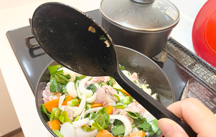 炒める・煮る・すくうなど、さまざまな工程があるシチュー作りに使ってみました。