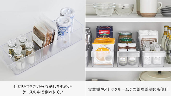 使いかけの食材や調味料を分けて収納しておくのにも便利ではないでしょうか。