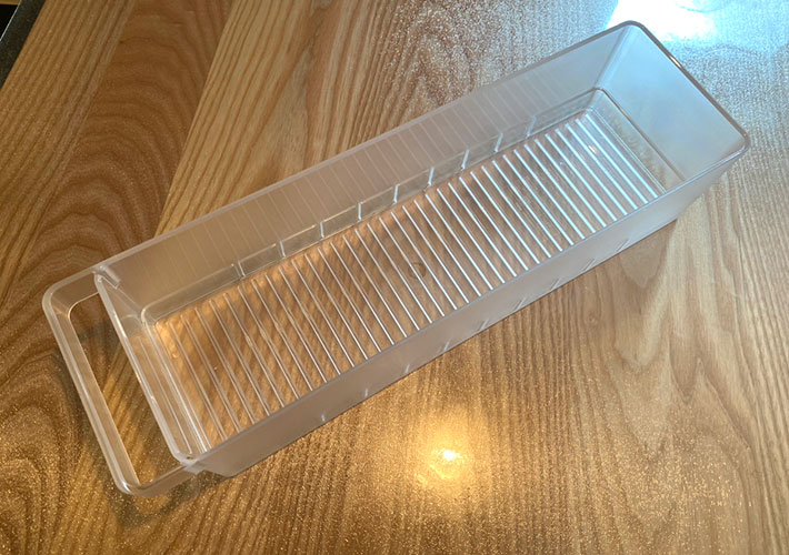 また、底部には溝がついていて、納豆パックなどの出し入れの際に滑り落ちにくくなっています。