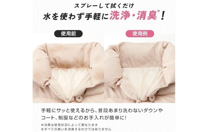 水洗い不要なので、型崩れが心配なダウンコートなど洗うのが難しい衣類に安心して使えます。
