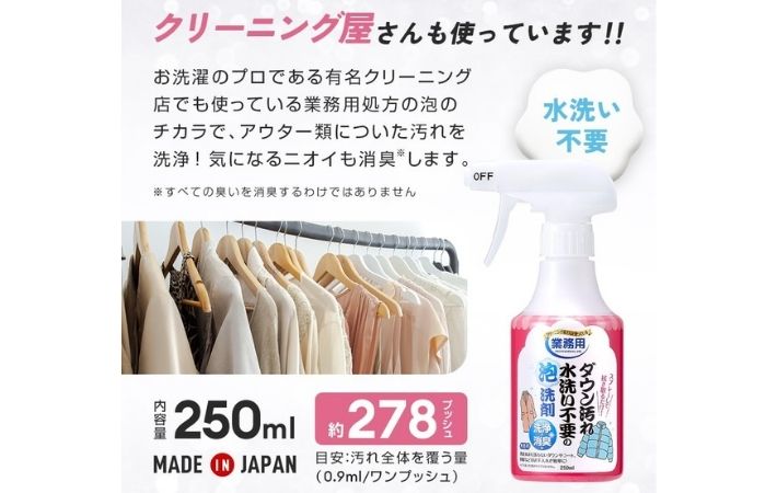 『クリーニング店も使っている』というキャッチコピーも使ってみたくなったポイントです!