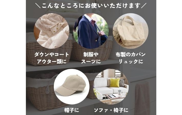 さらに、衣類だけでなく帽子やカバン、ソファ、椅子といった、お手入れするのが難しい布製品にも使えます。