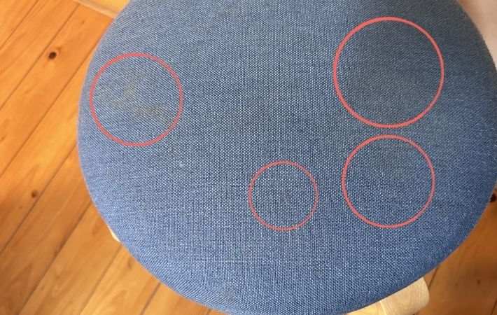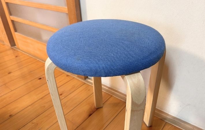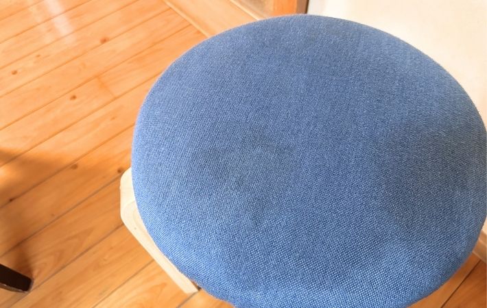 こちら、毎日愛用している布製のスツールですが、ふと見ると座面にくすみや黄ばみが目立つようになっていました。