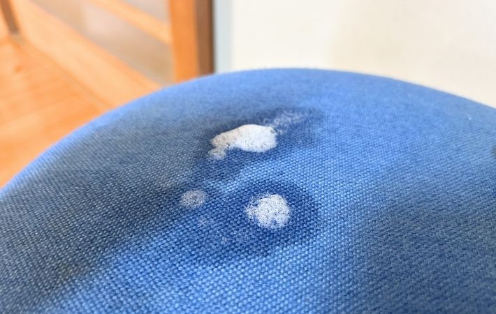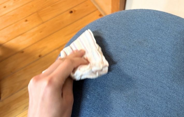 まずはクリーナーを柔らかい布に含ませ、座面の端っこで色落ちやシミにならないか慎重にテストを行います。