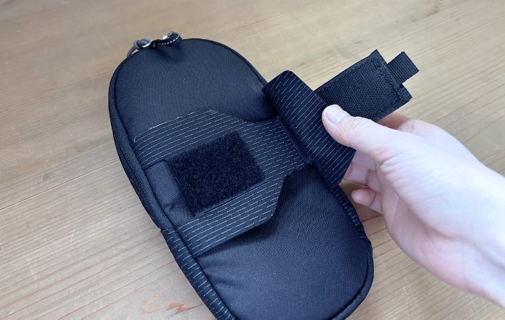『ナノパデッドケース L』の最大の特徴は、背面にベルクロ式のアタッチメントがついていることです。