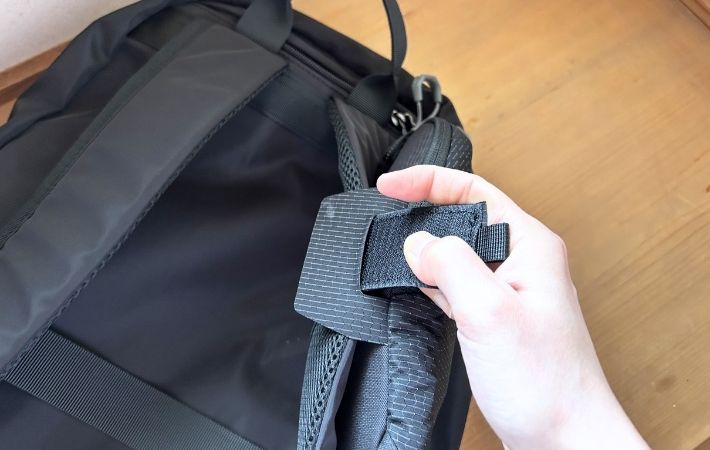 また、上部にはリフレクティブ(反射)アクセントつきのループがあり、夜道を歩く時に少しだけ安心感がプラスされる気がします。