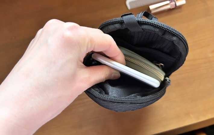 ここにスマホなどの必需品を入れておけば、歩きながらでもアクセスが瞬時に可能になります。