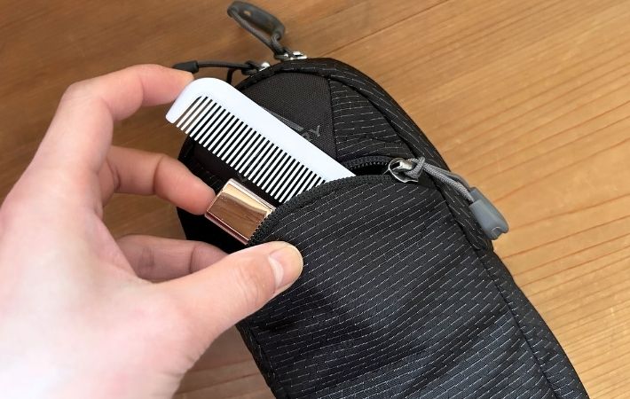 ただ、厚みのあるコインケースを一緒に入れると、中がぎゅうぎゅうになってしまい、少し取り出しにくいと感じました。